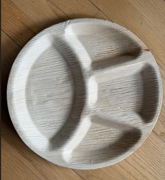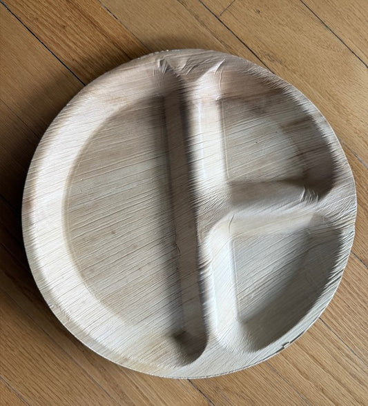 10" Round Palm Leaf Disposable 3 Compartment Dinner Plates
