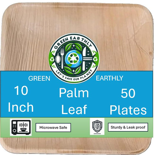 10" Palm Leaf disposable Dinner Plates - 50 Pack